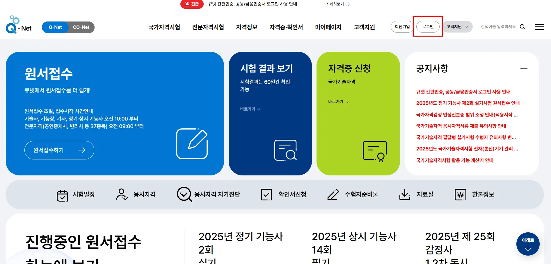 Q-net(산업인력공단 홈페이지)에 들어가서 로그인 한다.